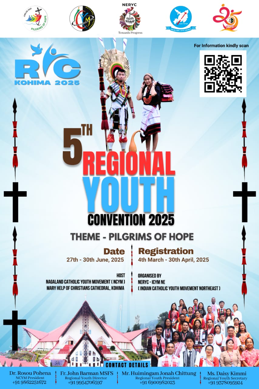 BONGAIGAON, 1 March 2025 – The poster for the 5th Regional Youth Convention (RYC) 2025 was officially unveiled during the North East India Regional Bishops’ Council (NEIRBC) meeting at Bishop’s House, Bongaigaon, Assam. The event, held from 28 February to 1 March, marked a significant step in promoting youth engagement in the Church.