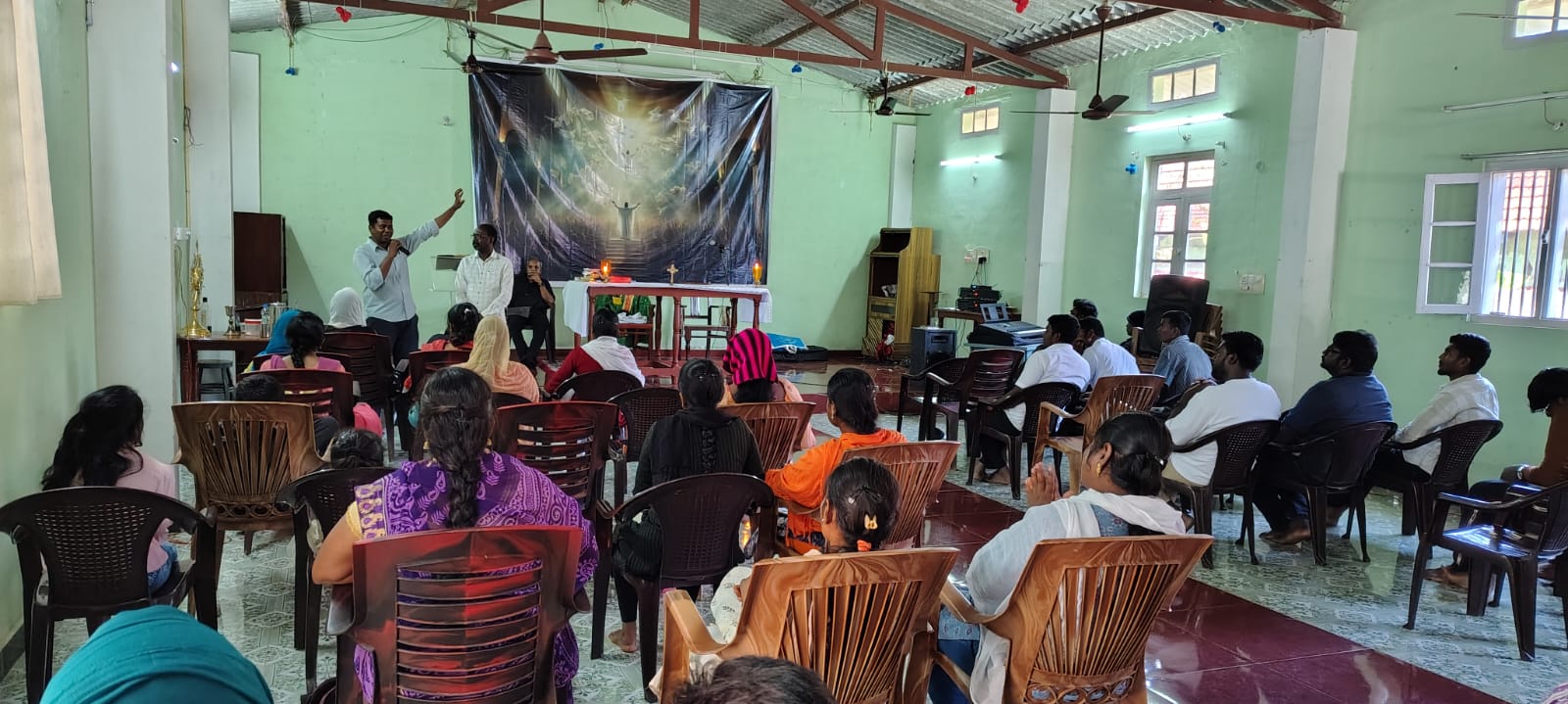 The retreat commenced on the evening of February 14 with a Holy Adoration session led by Rev. Fr. Singarayan, Parish Priest of Boomanur. Participants of the retreat were divided into four groups, each offering special prayers for the Salem Diocese. The day concluded with night prayer and rest.