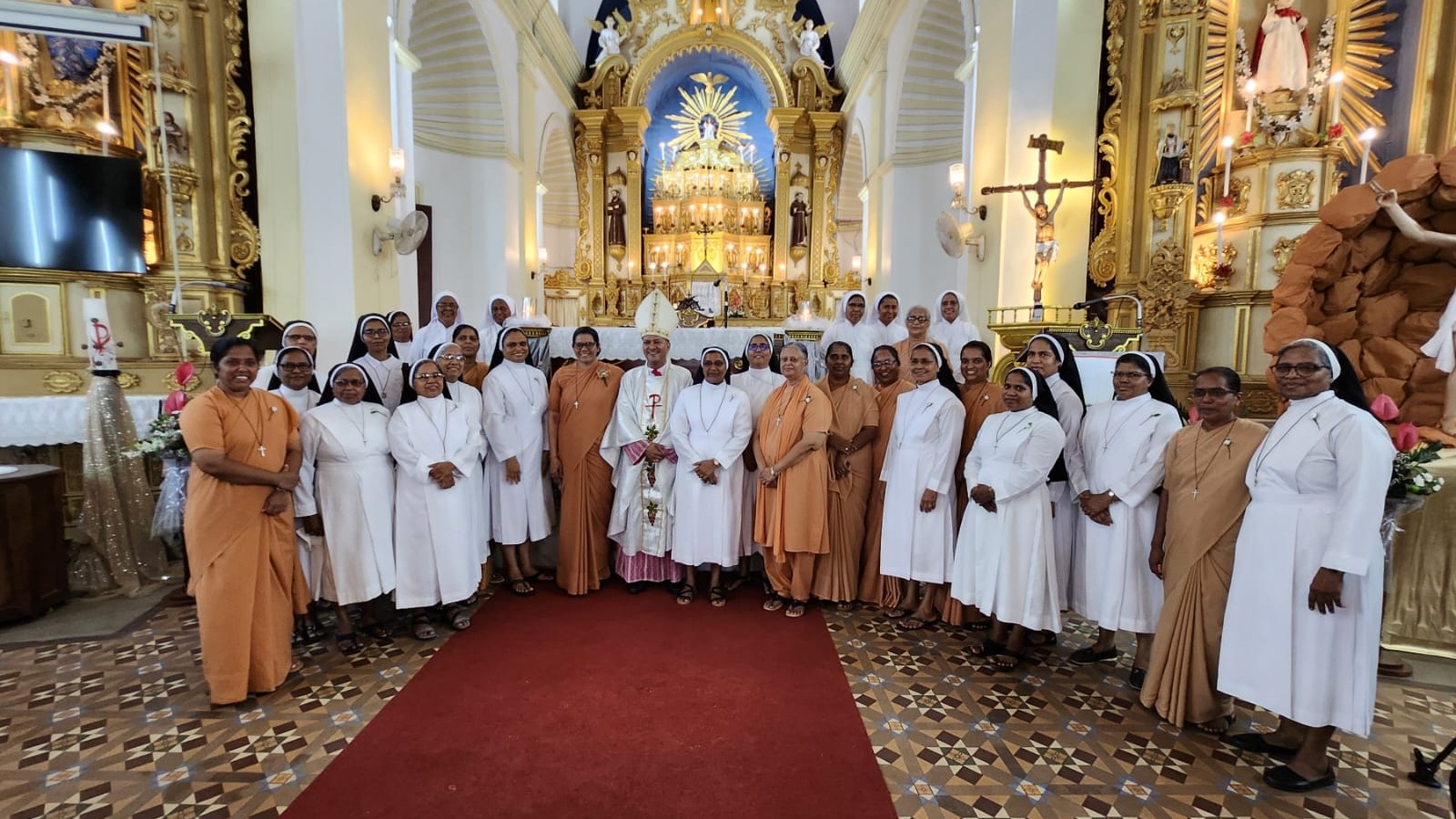 Calangute, Goa, May 13, 2025: The Silver Jubilee of the religious profession of Sisters Rita Fernandes and Alzira D’Souza was celebrated on Monday, May 12, 2025, at St. Alex Church in Calangute. The celebration, held under the theme “Twenty-five years with Jesus: a journey of hope and thanksgiving to God”, was attended by clergy, religious, parishioners, and family members of Sisters Rita and Alzira, who belong to the Congregation of the Holy Family of Nazareth (SFN).