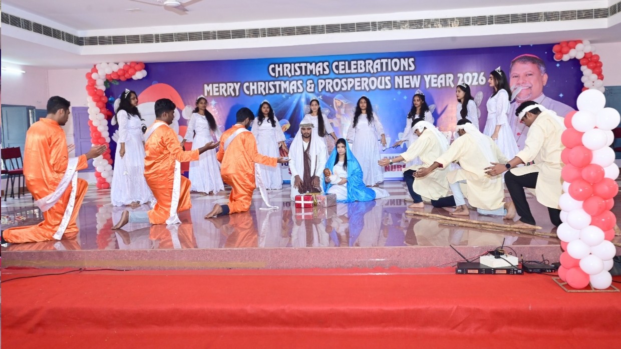 The celebration featured Christmas carols by students of St. Joseph Dental College and St. Joseph College of Nursing, along with a short skit depicting the birth of Jesus Christ and its message of peace and hope.