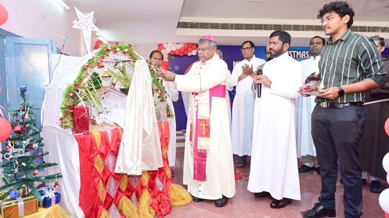 The programme began with a lamp-lighting ceremony, followed by the blessing and inauguration of the Christmas crib by Jaya Rao Polimera, Bishop of Eluru diocese, who attended the event as President and Chief Guest.