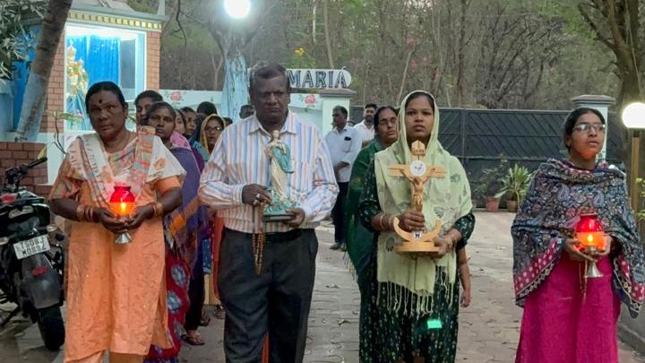 Secunderabad, Telangana, March 4, 2025: St. Joseph’s Church in Bolarum, Telangana, joyfully welcomed the Diocesan Jubilee Crucifix into its parish on February 1, 2025, as part of the celebrations for the 2025 Jubilee Year. This sacred symbol of Christ’s sacrifice was venerated during the First Saturday Rosary, Holy Mass, and First Friday Adoration at the church.