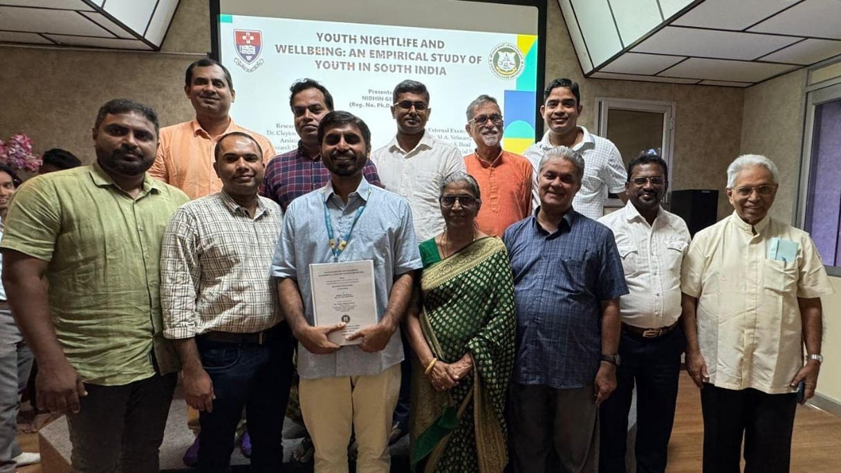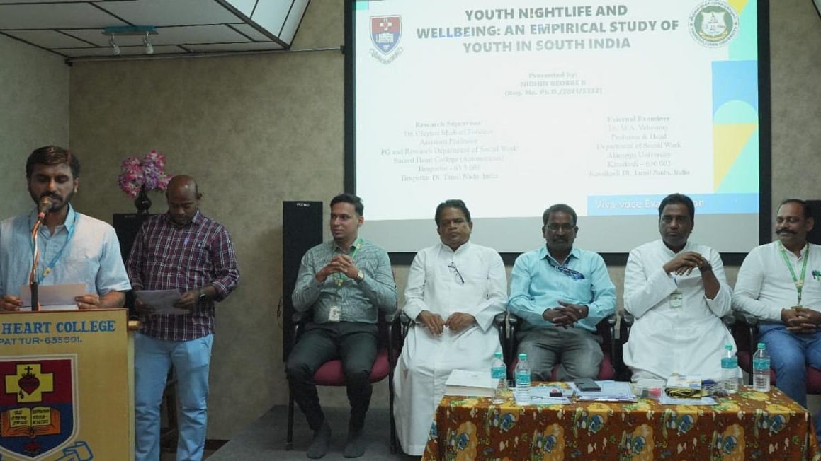Tirupattur, October 17, 2025: Fr. Nidhin George Kaitharan SDB of the Sacred Heart Province, Bangalore, achieved a historic milestone on October 13 by successfully defending his Ph.D. thesis titled “Youth Nightlife and Wellbeing: An Empirical Study of Youth in South India” at Sacred Heart College, Tirupattur, Tamil Nadu. His pioneering research, involving over 2,400 young participants, stands as one of India’s most extensive studies on youth wellbeing.