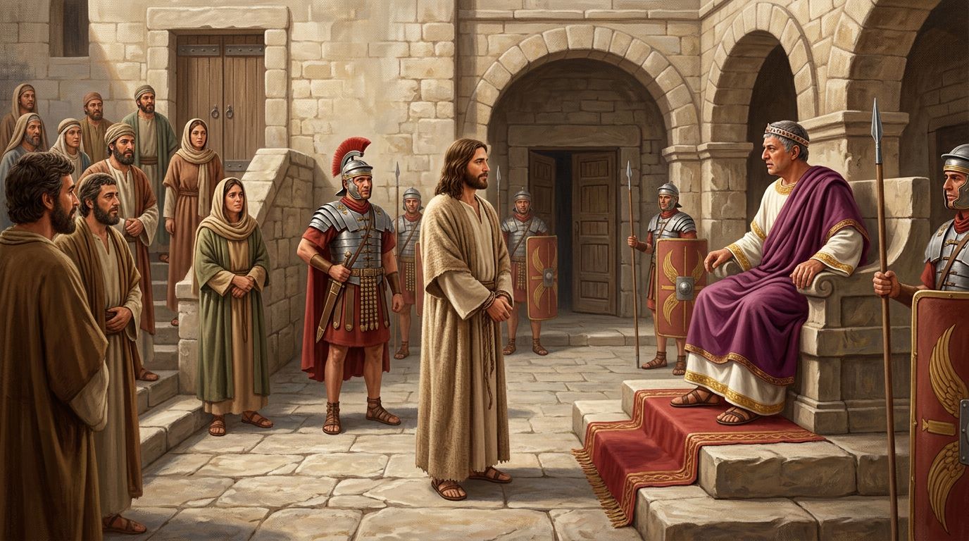 இயேசுவை கைது செய்த தலைமைச்சங்க காவலர்கள் அவரை பிலாத்துவிடம் ஒப்படைத்தார்கள். இயேசு கலிலேயா பகுதியை சார்ந்தவர் என்பதை உணர்ந்த பிலாத்து அவரை ஏரோதுவிடம் அனுப்புகிறான். ஏனெனில் ஏரோது கலிலேயா பகுதியை ஆட்சி செய்து கொண்டிருந்தவன். இயேசு ஏரோதுவின் ஆட்சி எல்லைக்கு உட்பட்டவர் என்பதால் பிலாத்து இந்நிலையை எடுத்தான். இயேசுவை காண ஏரோது பெரும் விருப்பமாக இருந்தான் என்பதை விவிலிய நூலின் வாயிலாக நாம் அறிந்து கொள்ளலாம் (லுாக் 23:8). சுமார் 30 வருடங்களுக்கு முன் ஏரோது அந்திப்பாவின் தந்தை பெரிய ஏரோது, இயேசுவைக் கொலை செய்ய வேண்டும் என்று விரும்பி காவலர்களை அனுப்பினான். ஆனால் இயேசுவின் பெற்றோர் அவரை எகிப்துக்கு அழைத்துச்சென்று காப்பாற்றினார்கள். இப்போது அவனது மகன் வாயிலாக வரலாறு மீண்டும் திரும்பியது. அதோடு, அதுவரை பூர்வஜென்ம எதிரிகளான பிலாத்துவும், ஏரோதுவும் அன்று தான் நண்பர்களாக மாறினார்கள் (லூக் 23:12).