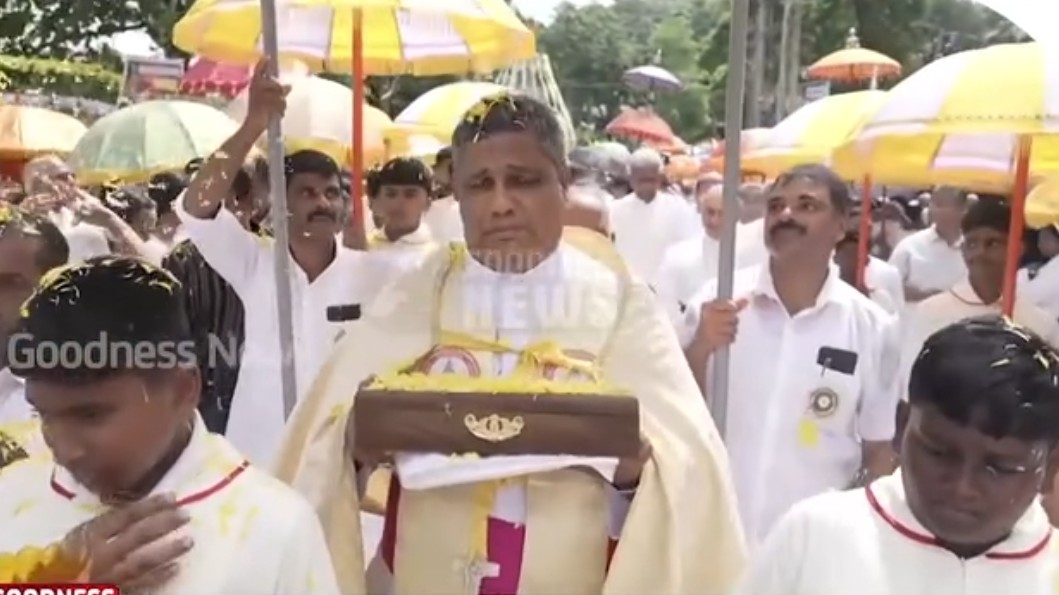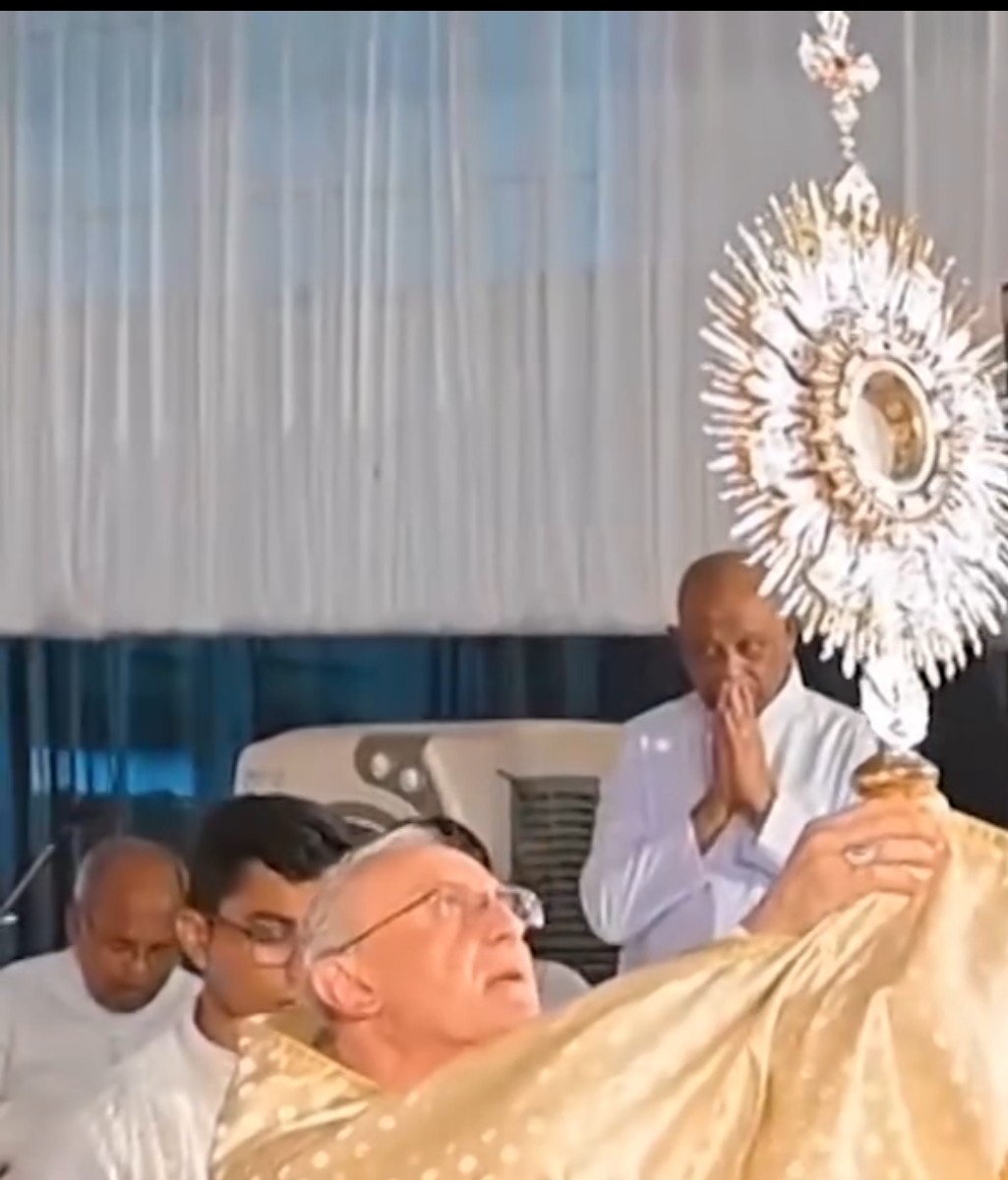 The Eucharistic host, bearing the mysterious image of Christ, was received and taken in procession to Vilakkannur, where it was installed on a specially-designed pedestal in the church. Dr. Biju Muttathukunnel, Chancellor of the Thalassery Archdiocese, read the Vatican decree in Malayalam, followed by Holy Mass led by Fr. Mathew Vengakkunnel and attended by all priests under the archdiocese.